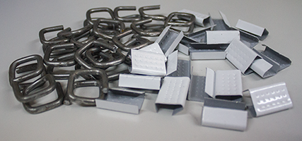 Se trata de una pieza metálica que al aplastarla presiona los dos extremos del fleje, atrapándolo y evitando que se deslice.